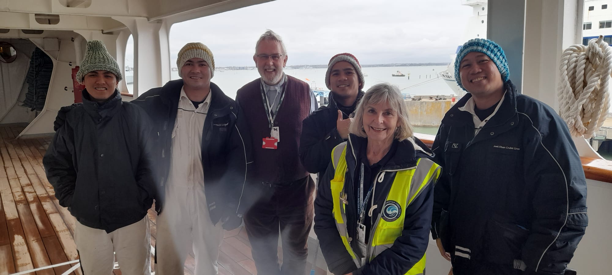 Angela, a mother of 2 daughters, and grandmother of 4 has worked alongside Brian as a Ship’s Welfare Visitor for the past seven plus years, latterly in Portsmouth. She has a heart for seafarers and loves to hear their personal stories. Visiting cruise ships has also enabled Angela to meet female crew and engage with them.
